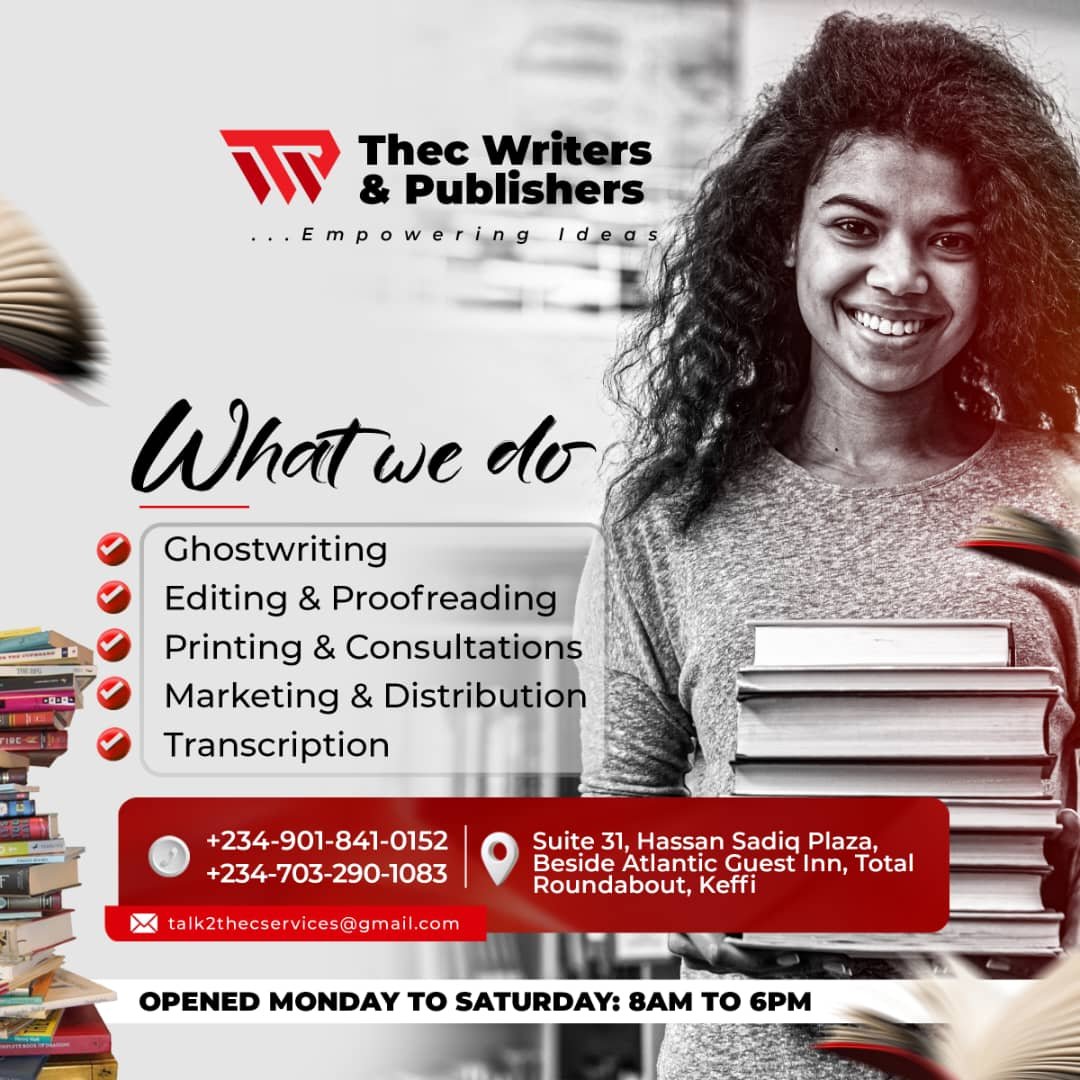 Thec Publishers offers comprehensive publishing services to help authors bring their vision to life. From ghost writing to marketing, we're with you every step of the way.